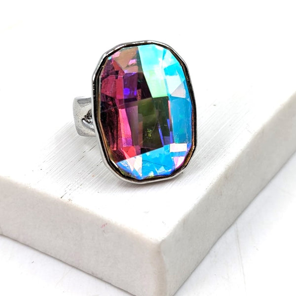 We have a large collection of stretchy, adjustable one size rings, spinning rings in sizes 6 to 10. We also supply statement and stackable rings with CZ and Swarovski crystals, cut glass, semi-precious stones, resin. sterling silver, stainless steel, leather, alloy - the largest range of plating in the UK and Europe.
